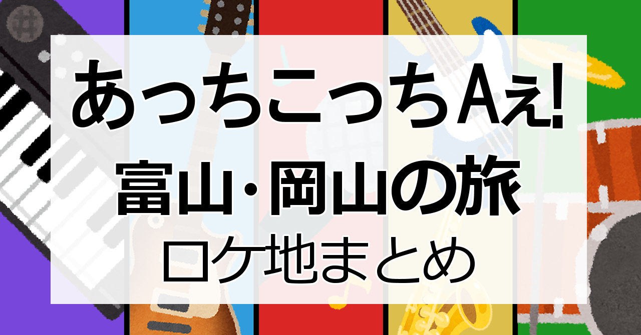 Aぇ! groupの番組「あっちこっちAぇ!」の富山県と岡山県の旅にて、メンバーの皆さんが行った場所をまとめました。