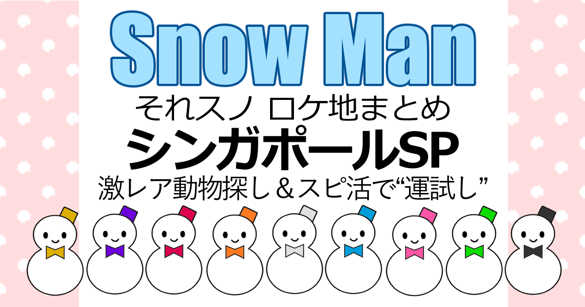 それスノ「初のシンガポールSP!激レア動物探し&スピ活で“運試し”」にて、佐久間大介くん、深澤達也くん、渡辺翔太くんが行った場所をまとめました。